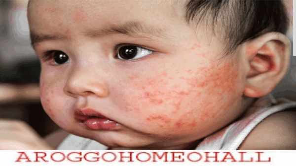 মুখমণ্ডলে ঘা : শিশুর মুখমণ্ডলে ছোট ছোট সাদা ফুস্কুড়ি প্রায়ই জন্মাইতে দেখা যায়। প্রথমে গালে, পরে কপালে এবং কখনও কখনও সর্ব্বাঙ্গে এইরুপ ফুস্কুড়ি জন্মে। কিছুদিনের মধ্যে ফুস্কুড়ি রং কাল হয় এবং ফাটিয়া যায়, ফাটিয়া যাইবার পর হলদে মামড়ি পড়ে। ভাইওলা ট্রাইকলার 3 শক্তি ইহার উৎকৃষ্ট ঔষধ। ইহাতে উপকার না হইলে রাস টক্স 6 শক্তি প্রযোজ্য। রাস টক্স প্রয়োগে কখনও কখনও প্রদাহাদিও বৃদ্ধি হয়, এইরুপ অবস্থায় দুই-একদিন ঔষধ বন্ধ রাখা সঙ্গত। মুখ-গহ্বরে ফুস্কুড়ি বা ঘা হইলে – বোরাক্স 3x চুর্ণ দেওয়া যাবে। ওষ্ঠে ও মুখে ফুস্কুড়ি, জিহ্বার প্রান্তভাগ লেপাবৃত, মধ্যভাগ লাল রেখাঙ্কিত, মুখে দুর্গন্ধ, অত্যান্ত অস্থিরতা, সবুজবর্ণেও তরল ভেদ লক্ষণে আর্সেনিক 6 শক্তি। দন্তোদ্গমকালীন মুখে ঘা, মুখে ও মাথায় ঘাম, ভুক্তদ্রবোর কণাবিশিষ্ট কঠিন মল ও পায়ে পাতা শীতল লক্ষণে ক্যাল্কেরিয়া কার্ব্ব ৩০ শক্তি। জিহ্বা স্ফীত ও প্রদাহযুক্ত, দন্তমূলে ক্ষত এবং তজন্য রক্তস্রাব, মুখে পচা গন্ধ, মুখ দিয়া প্রচুর পরিমাণে লালাস্রাব, আমাশয়ের ন্যয় শ্লেম্মাযুক্ত তরল ভেদ লক্ষণে মার্ক সল ৬ শক্তি।
