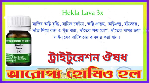 বিশেষ করে মাড়ির দাঁত উঠার সময় চোয়ালে যে ব্যথা হয়, দাঁত দিয়ে রক্ত ও পূঁজ ঝরা, দাঁতের ক্ষয় রোগ, দাঁতের পাথর জমা, সাইনাসের জটিলতা, অস্থিতে পচন, নালীঘা, স্নায়ুগুল, নাকের ভিতর ঘা ও মুখের চোয়ালে হাড় বৃদ্ধি ইত্যাদি জটিলতায় হেক্লা লাভা ৩x ব্যবহার করা যায়।