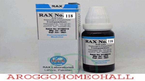 র্যাক্স নং – ১১৮ (উকুন নাশক) হোমিওপ্যাথিক কম্বিনেশন ঔষধ