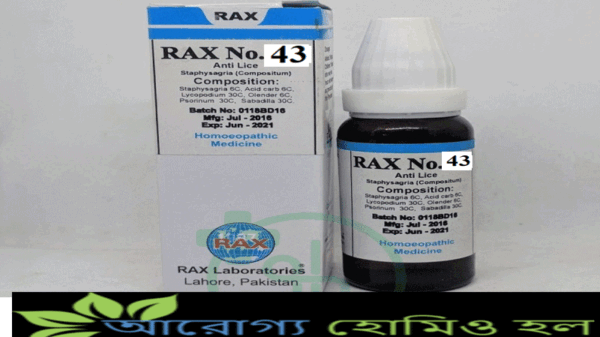 র্যাক্স নং- ৪৩ (হস্তমৈথুন) হোমিওপ্যাথিক কম্বিনেশন ঔষধ