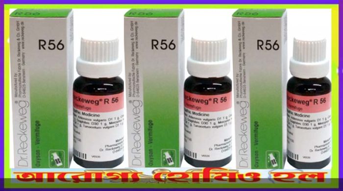 আর ৫৬ ভার্মিফিউজ কৃমি ড্রপ সম্পর্কে ধারণা : আর ৫৬ হল একটি হোমিওপ্যাথিক ওষুধ যা প্রাপ্তবয়স্ক এবং শিশুদের মধ্যে কৃমির লক্ষণগুলির চিকিৎসার জন্য বেশ কয়েকটি হোমিওপ্যাথিক ঔষধ (ড্রপগুলিতে পাওয়া যায়) এর মিশ্রণের মধ্যে রয়েছে আর্টেমিসিয়া ভালগারিস, সিনা ইত্যাদির মতো গুরুত্বপূর্ণ ঔষধ রয়েছে যা সমস্ত ধরণের কৃমির উপর কাজ করে, পরজীবী নিমাটোড কীট যা সাধারণত মেরুদণ্ডের অন্ত্রে বাস করে (অ্যাসকারাইডস) ও শরীরের টিস্যুর মৃত্যুর নির্দিষ্ট প্রক্রিয়ায় (মর্তিকরণ) প্রতিরোধ করে।