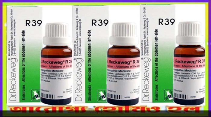 আর ৩৯ অ্যাবডোমেন ড্রপস সম্পর্কে ধারণা : আর ৩৯ ড্রপসটি হল এবটি হোমিওপ্যাথিক ওষুধ যা বেশ কিছু ঔষধ শিশ্রণ এই ড্রপগুলিতে পাওয়া যায় যা বাম পেটে ব্যথার চিকিৎসা করে। এটিতে ল্যাকেসিস (Lachesis), লাইকোপোডিয়াম (Lycopodium) ইত্যাদির মতো গুরুত্বপূর্ণ ঔষধ মিশ্রণ রয়েছে যা বাম দিকে ডিম্বাশয়ের স্নেহ, সিস্ট (ঝিল্লিযুক্ত থলি অথবা শরীরের অস্বাভাবিক চরিত্রের গহ্বর, তরলযুক্ত), প্রদাহ ও টিউমারগুলিতে কাজ করে।